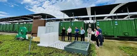 集裝箱式養(yǎng)殖系統(tǒng)采用 20 呎定制化“集裝箱”,尺寸是 6.1 米 *2.4 米 *2.8 米,養(yǎng)殖水體 25 立方米,占地面積為 15 平方米 ,配有納米增氧管(增氧)、出魚口(收魚)、集污槽(排污)、天窗(觀察投喂飼料)、固液分離器(尾水處理)等功能構(gòu)件。